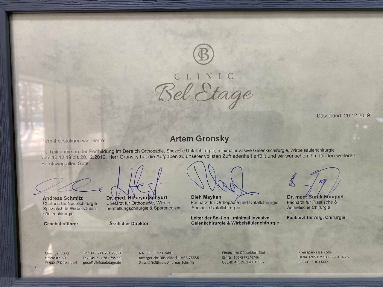 ДокладнішеНаш партнер — Clinic Bel Etage, Дюсельдорф, Німеччина. Спеціалізація — ортопедія, травматологія, нейрохірургія. Проводять онлайн консультації, оперативні втручання на базі клініки.